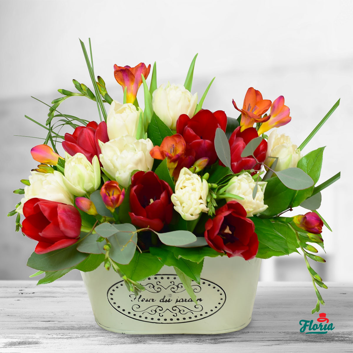 Flori Aranjament alb si rosu